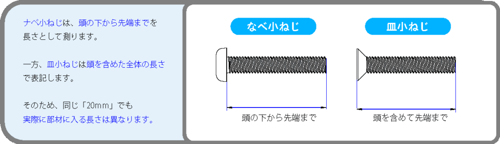 皿小ねじとナベ小ねじの長さの違い